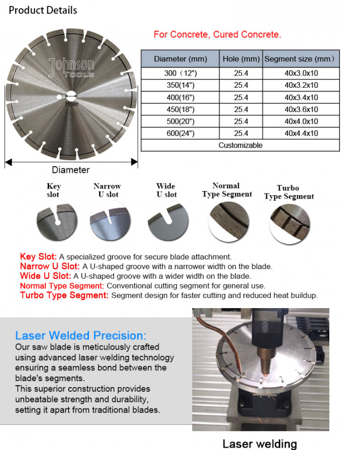 2. Lle informazioni della specificazione del diamante Turbo di 500mm la lama per sega per il calcestruzzo Cured con buona efficienza